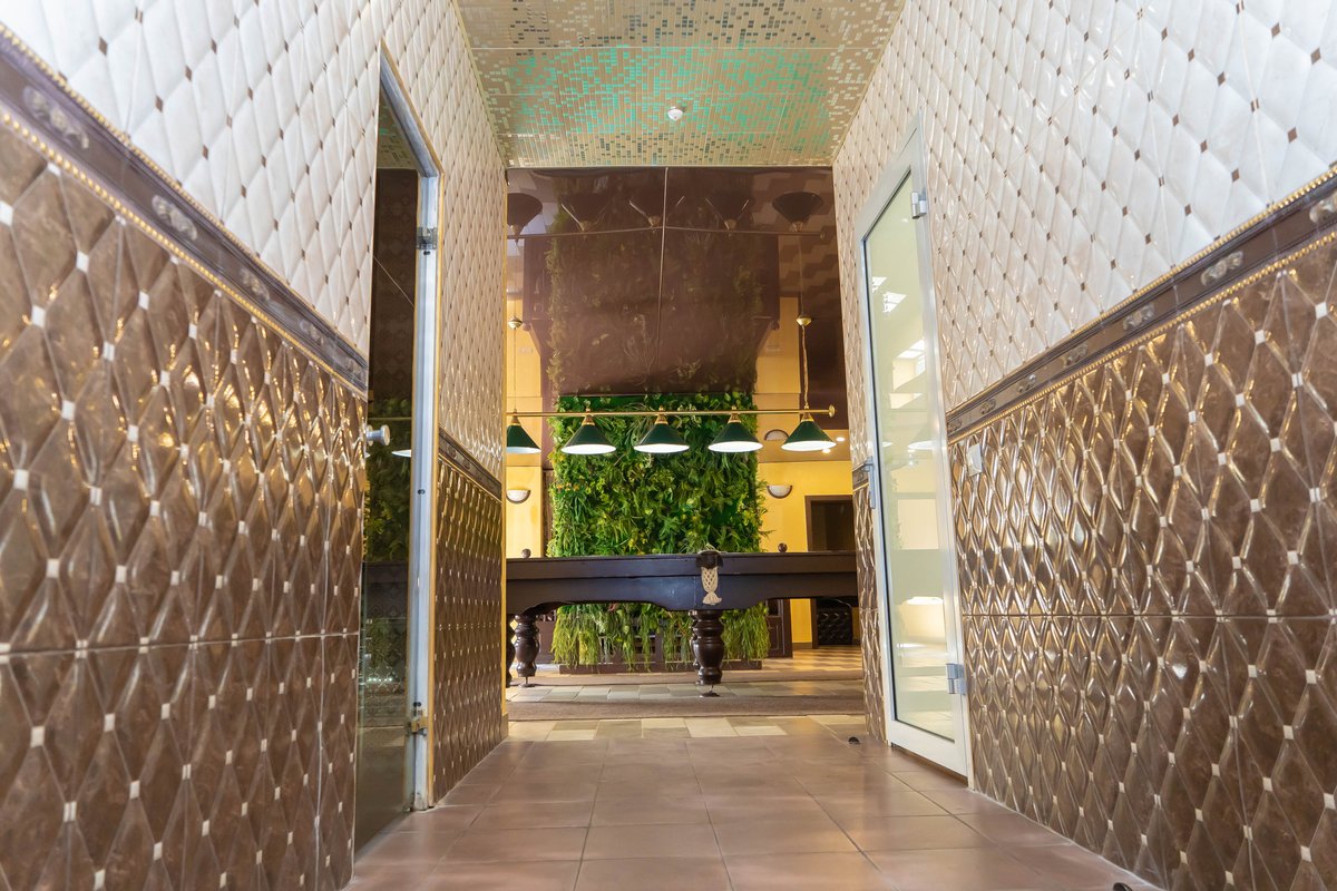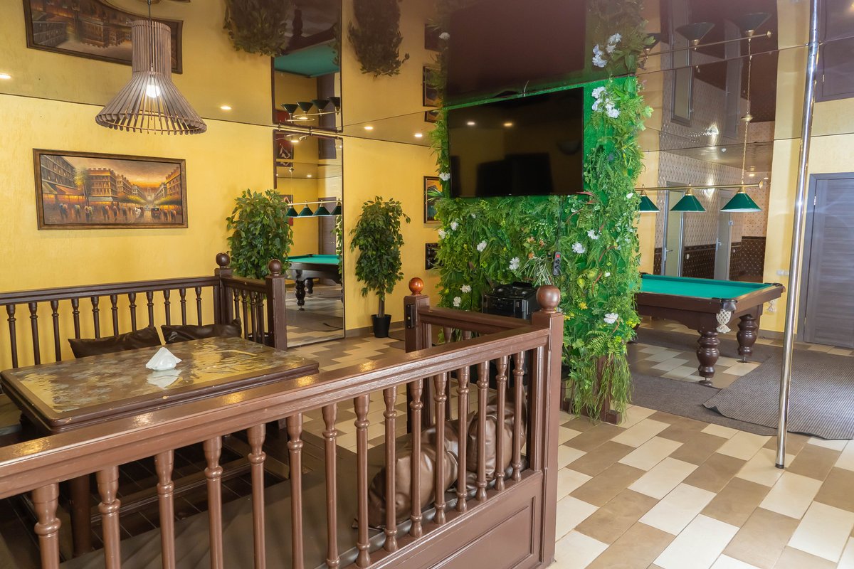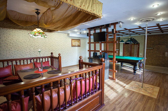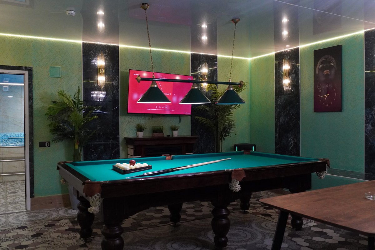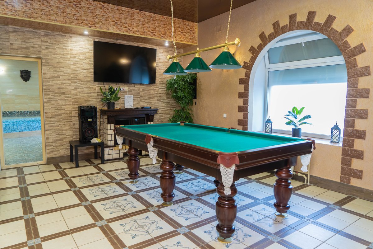 Не хочется в бассейн? Не беда! Вместо этого можно посидеть в нашей комнате отдыха. Мы постарались создать здесь уютный, практичный интерьер из максимально натуральных, экологичных материалов, подобрать мебель, которая будет одновременно удобной и эстетичной. Надеемся, что вам понравится! Для создания настроения мы можем предложить вам бильярд, камин и караоке. Также у нас имеется бар, а при необходимости вы можете прийти и с собственной едой - мы не возражаем! Главное помните, что плотная трапеза непосредственно перед посещением парной - это не самая удачная идея, согласно мнению докторов. А вот после парной - совсем другое дело!